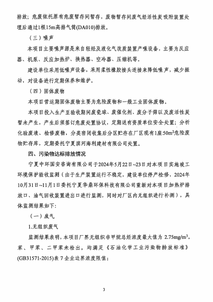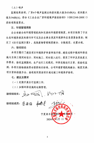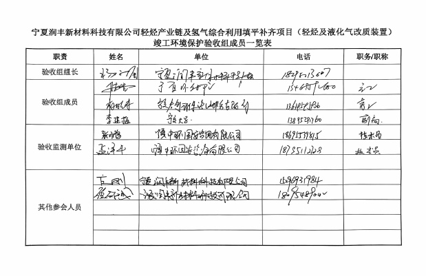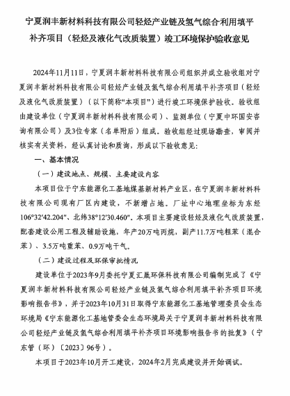 关于宁夏润丰新材料科技有限公司轻烃产业链及氢气综合利用填平补齐项目(轻烃及液化气改质装置)环境工程竣工验收意见
